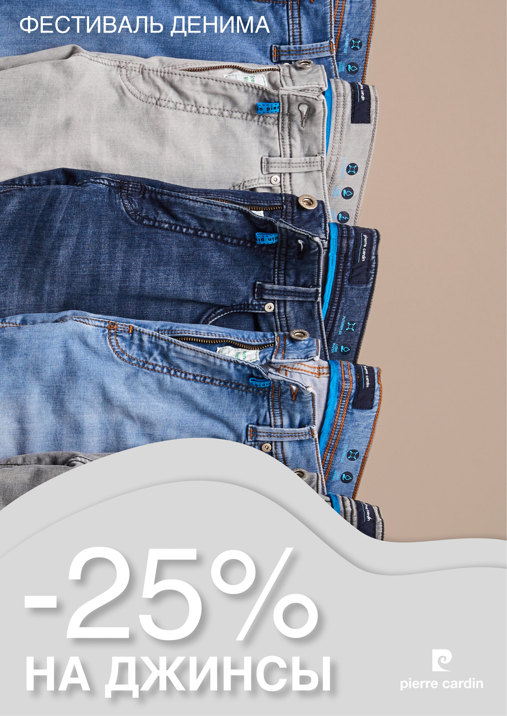 В период проведения фестиваля денима в магазине Pierre Cardin действуют скидка 25% на мужские джинсы. Не упустите возможность обновить свой гардероб выгодно!